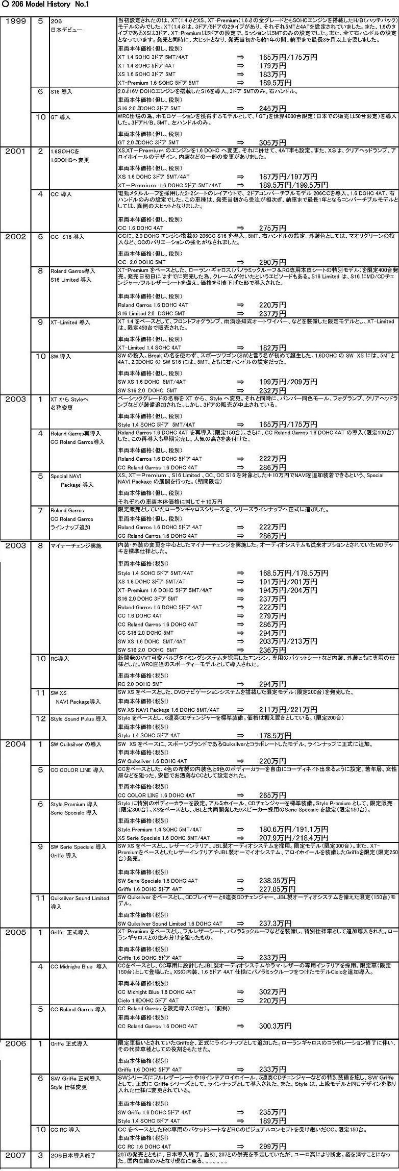 206 MODEL HIDTORY'99年の日本デビュー以来、206は様々なモデルが日本導入されています。その導入の歴史をご紹介します。206にお乗りのユーザー様は、いつ頃のご購入なんでしょうか?